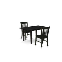 East West Furniture Nofk3-Blk-W 3-Pc Dining Room Set 2 Dining Chairs With Slatted Back And Wooden Seat - Butterfly Leaf Kitchen Table With Rectangular Top And 4 Legs- Black Finish