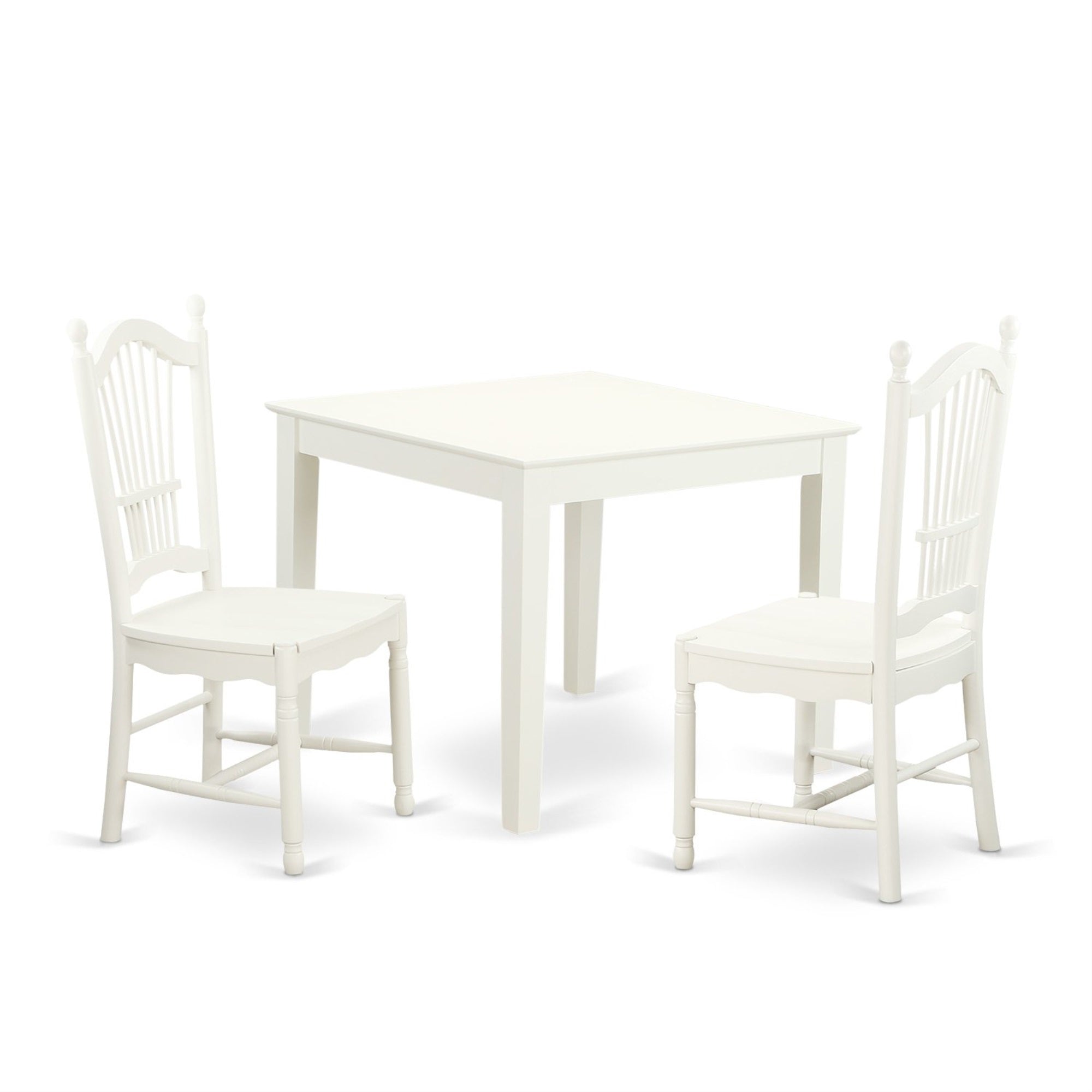 East West Furniture Oxdo3-Lwh-W Oxford 3 Piece Kitchen Set For Small Spaces Contains A Square Room Table And 2 Dining Chairs, 36X36 Inch