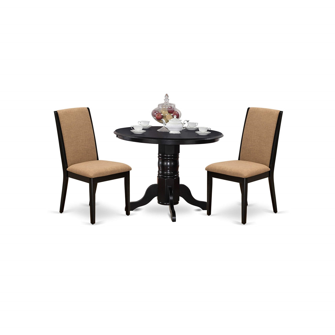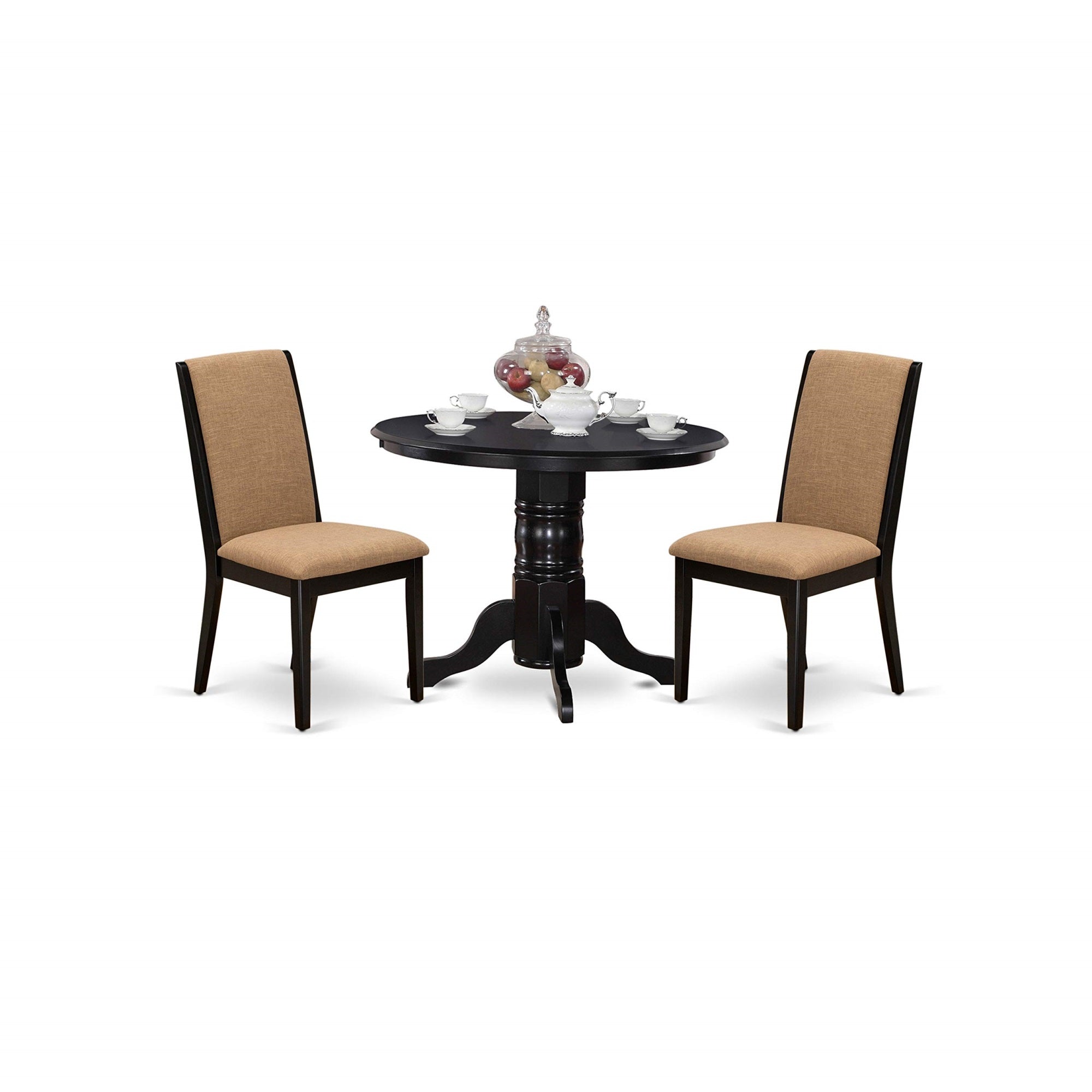 East West Furniture Shla3-Blk-47 3 Piece Modern Set Contains A Round Kitchen Table With Pedestal And 2 Light Sable Linen Fabric Parson Dining Chairs, 42X42 Inch