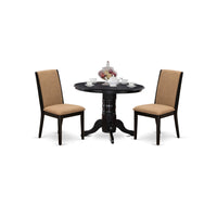 East West Furniture - Shla3-Blk-47 - 3-Piece Kitchen Table Seta Kitchen Table Set Including 2 Fabric Kitchen Chairs And A Round Luxurious Dining Room Table Will Boost The Elegance Of Your Dining Area Or Kitchen Areas