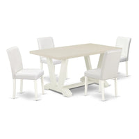 East West Furniture V026Ab264-5 5 Piece Room Set Includes A Rectangle Kitchen Table With V-Legs And 4 White Faux Leather Parsons Dining Chairs, 36X60 Inch