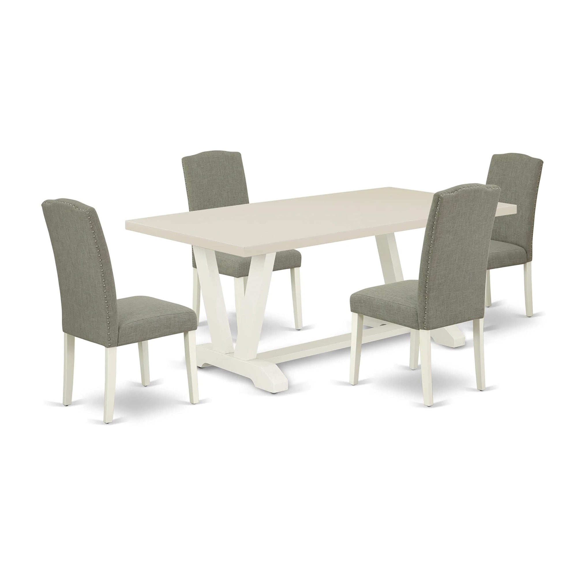 East West Furniture V027En206-5 V-Style 5 Piece Kitchen Set Includes A Rectangle Dining Room Table With V-Legs And 4 Dark Shitake Linen Fabric Parsons Chairs, 40X72 Inch