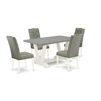 East West Furniture V096El207-5 V-Style 5 Piece Set Includes A Rectangle Dining Room Table With V-Legs And 4 Gray Linen Fabric Upholstered Parson Chairs, 36X60 Inch
