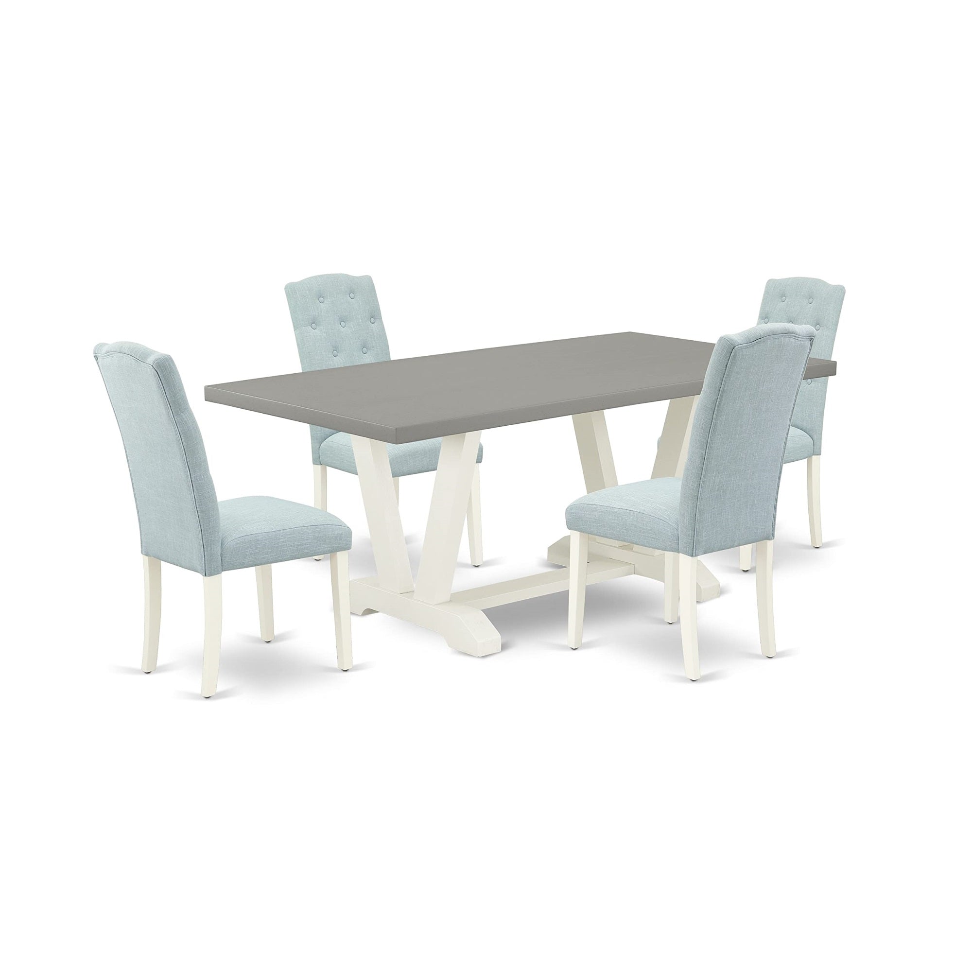 East West Furniture V097Ce215-5 V-Style 5 Piece Dining Set For 4 Includes A Rectangle Kitchen Table With V-Legs And 4 Baby Blue Linen Fabric Upholstered Chairs, 40X72 Inch
