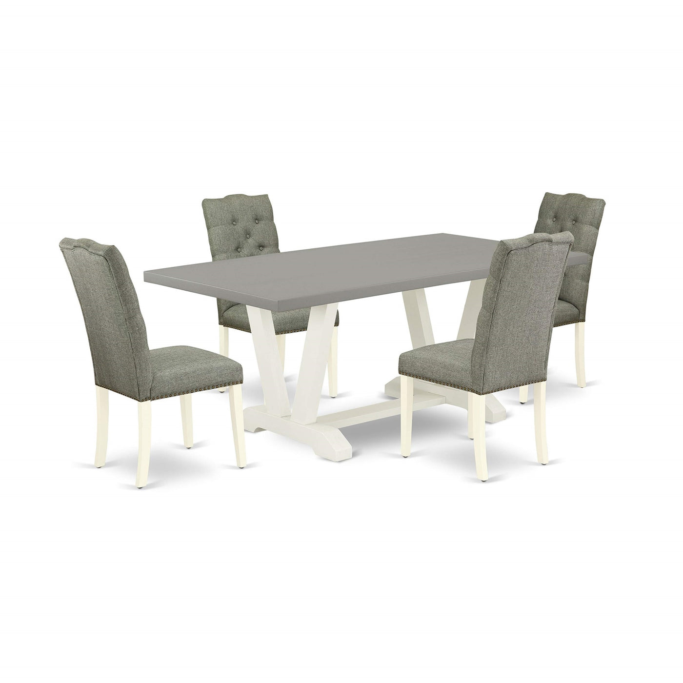 East West Furniture V097El207-5 V-Style 5 Piece Modern Dining Set Includes A Rectangle Wooden Table With V-Legs And 4 Gray Linen Fabric Upholstered Chairs, 40X72 Inch