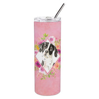 English Pointer Pink Flowers Double Walled Stainless Steel 20 Oz Skinny Tumbler