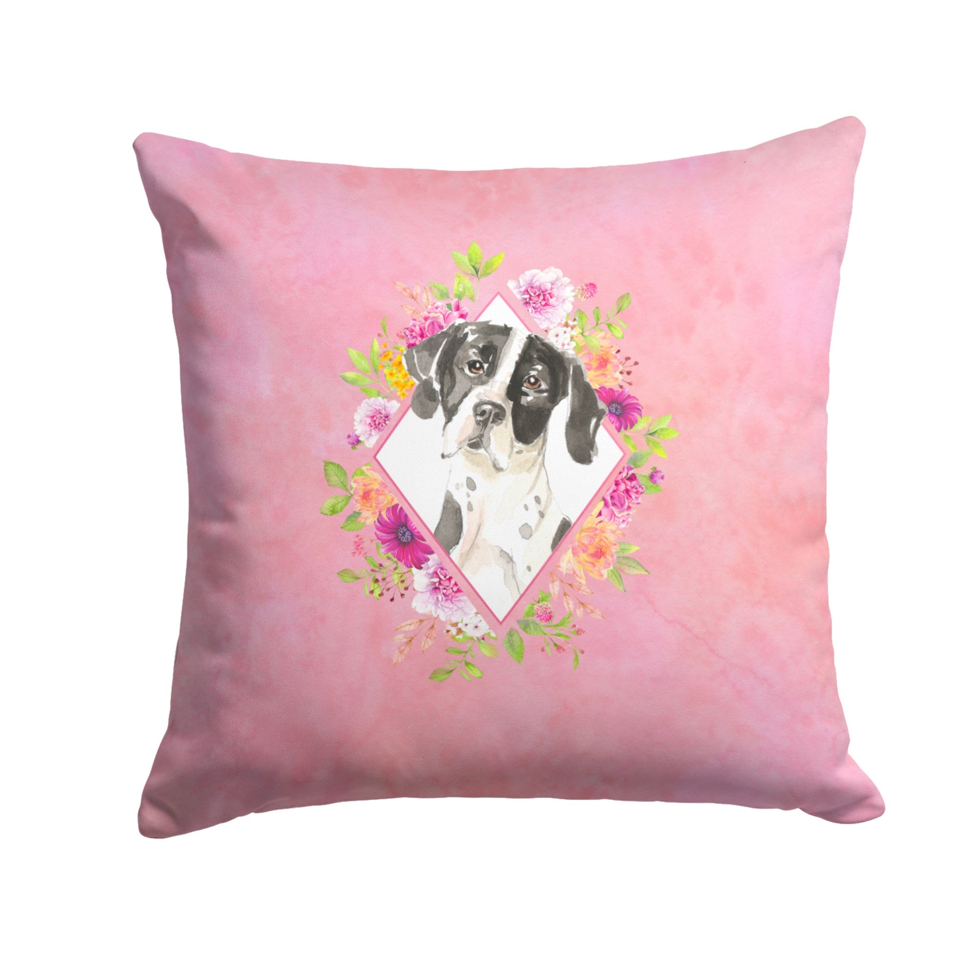213-194030082003 English Pointer Pink Flowers Fabric Decorative Pillow By Carolines Treasures, Inc, Made In Usa.Add Color To Your Solid Color Outdoor Patio Furniture Or Outdoor Seating Area With Our Full Color Artwork Outdoor Pillows. Approximately 14 Inches By 14 Inches Measured From Corner Of Pillow. 100% Polyester Fabric Pillow Sham With Pillow Form. This Pillow Is Made From Caroline'S Treasures New Material That Is Woven To Be Water Resistant. This Soft Canvas Fabric Can Be Used Inside On The Couch Or Outside On The Patio, Porch Or Veranda. We Dye The Fabric With Dyes That Are Color Fast And Built To Handle Weather. The Fabric Is Also Mildew Resistant, Stain Resistant, Fade Resistant And Machine Washable. Three Pieces Of Fabric Are Sewn Together To Create A Sham And Then A Polyester Insert Is Placed Inside The Sham To Form The Pillow. The Pillow Is Overstuffed And Holds It'S Shape. Both The Sham And The Pillow Insert Are Made In The United States. The Pillows Are All Handmade And May Vary Slightly In Size.