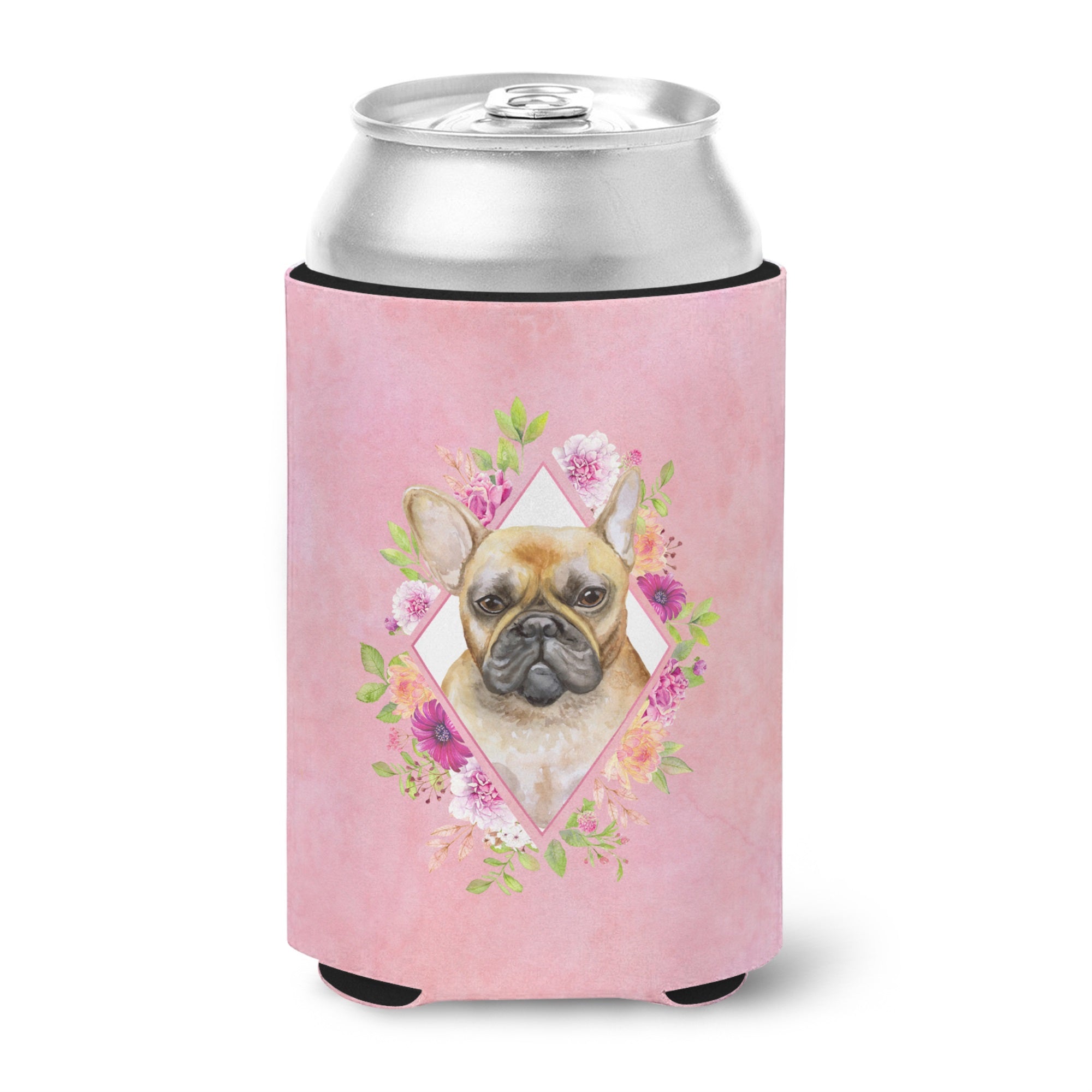 Fawn French Bulldog Pink Flowers Can Or Bottle Hugger