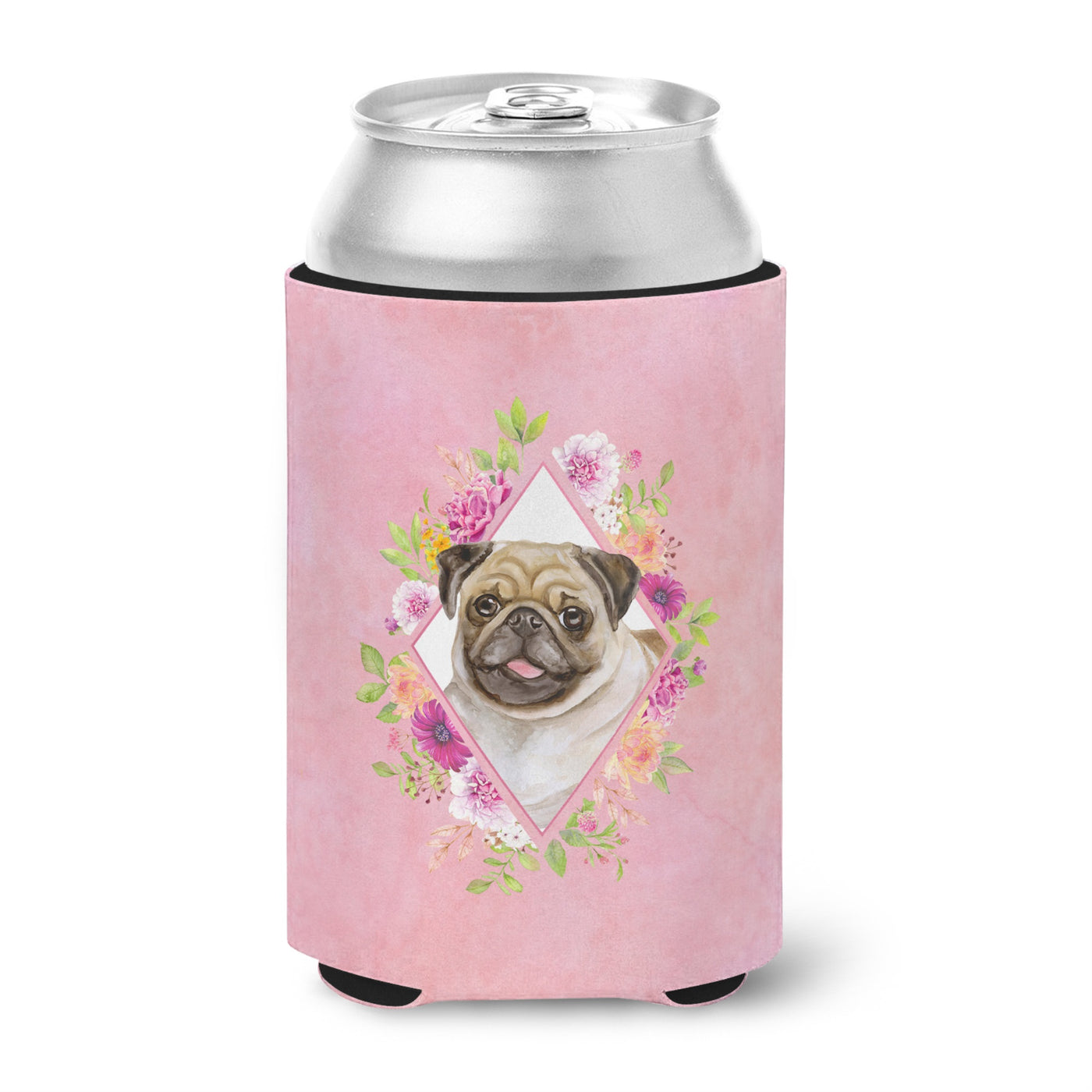 Fawn Pug Pink Flowers Can Or Bottle Hugger