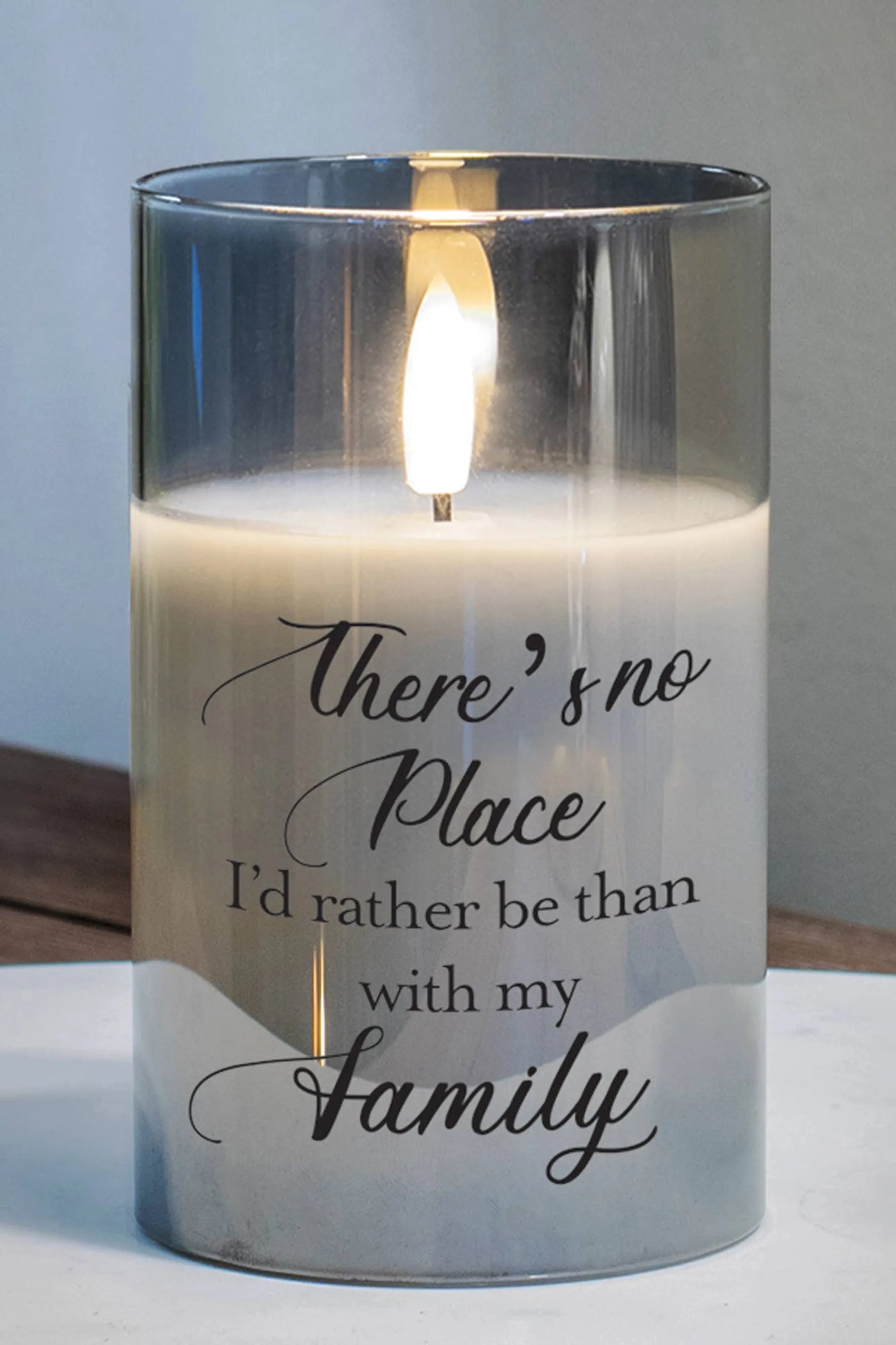 Flameless Pearlized Grey Led Glass Candle That Says: There Is No Place I Would Rather Be Than With My Family.