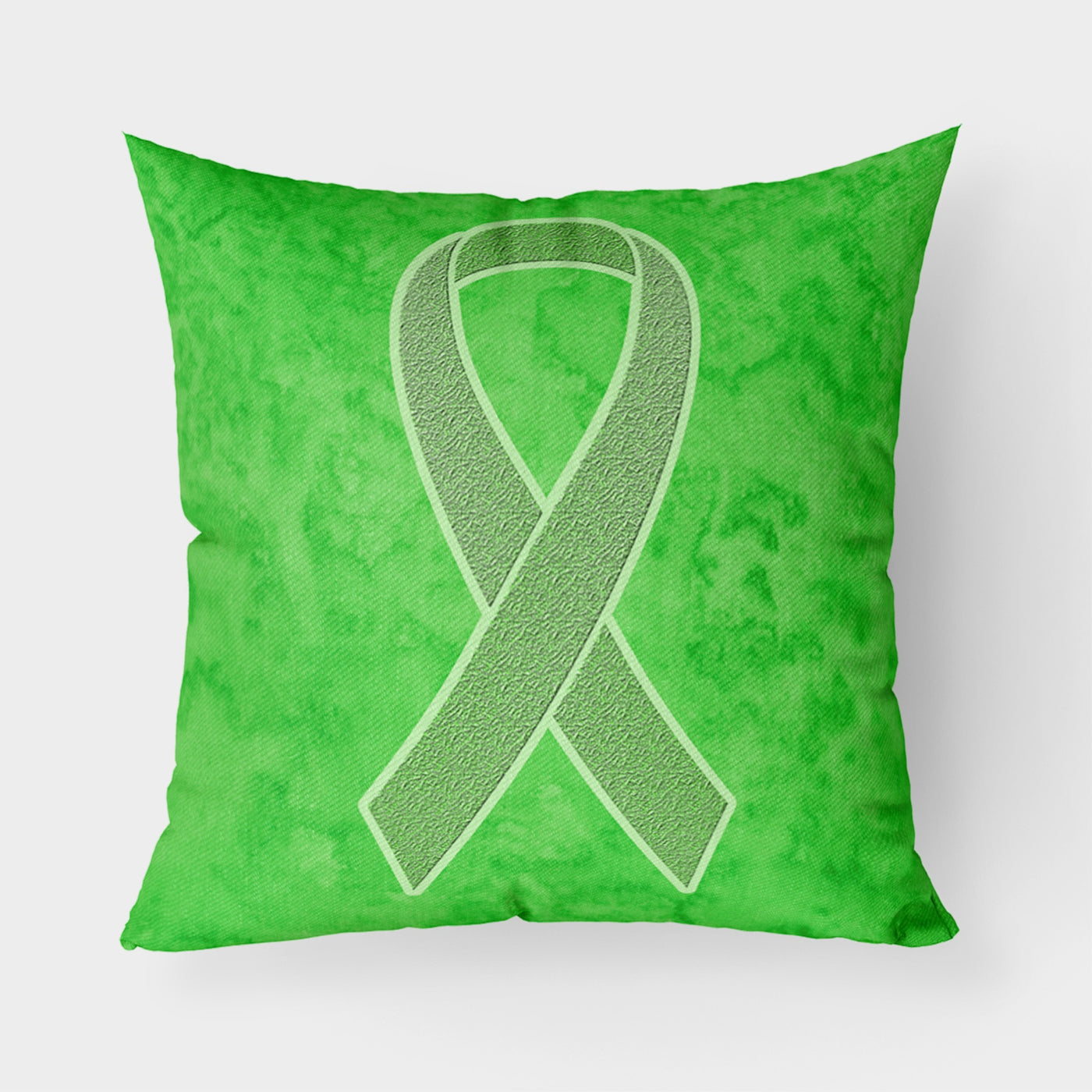 213-615872855346 Lime Green Ribbon For Lymphoma Cancer Awareness Fabric Decorative Pillow By Carolines Treasures, Inc, Made In Usa.Add Color To Your Solid Color Outdoor Patio Furniture Or Outdoor Seating Area With Our Full Color Artwork Outdoor Pillows. Approximately 14 Inches By 14 Inches Measured From Corner Of Pillow. 100% Polyester Fabric Pillow Sham With Pillow Form. This Pillow Is Made From Caroline'S Treasures New Material That Is Woven To Be Water Resistant. This Soft Canvas Fabric Can Be Used Inside On The Couch Or Outside On The Patio, Porch Or Veranda. We Dye The Fabric With Dyes That Are Color Fast And Built To Handle Weather. The Fabric Is Also Mildew Resistant, Stain Resistant, Fade Resistant And Machine Washable. Three Pieces Of Fabric Are Sewn Together To Create A Sham And Then A Polyester Insert Is Placed Inside The Sham To Form The Pillow. The Pillow Is Overstuffed And Holds It'S Shape. Both The Sham And The Pillow Insert Are Made In The United States. The Pillows Are All Handmade And May Vary Slightly In Size.