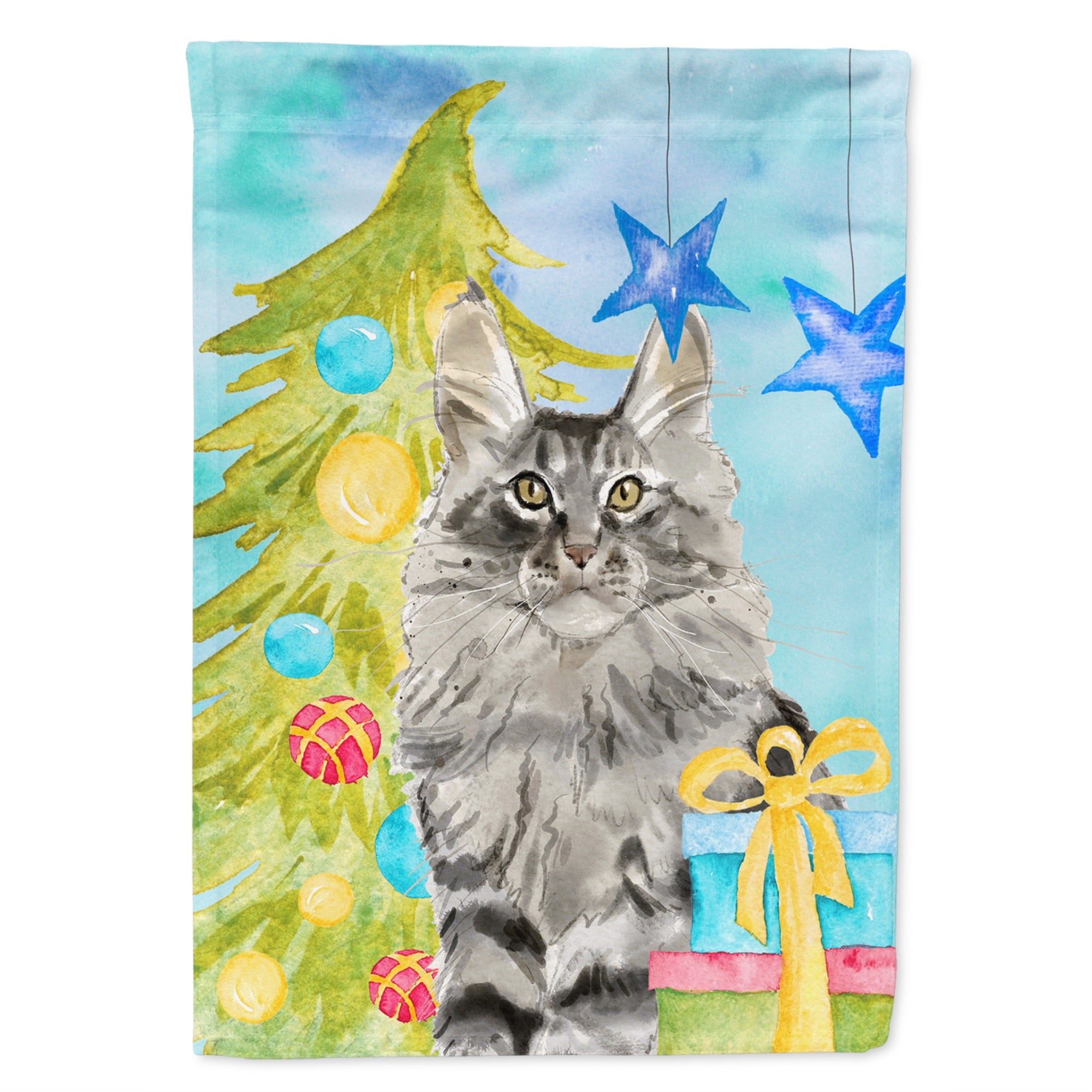 213-194030043714 Maine Coon Christmas Presents Flag Garden Size, Artwork For Your Garden, Patio Or Yard. This Is A Thick Double Sided Garden Flag Made From Two Pieces Of Polyester Fabric. This 2 Ply Garden Size Flag Is Water Resistant And Weather Proof. Heavier Than Most Other Garden Flags Available This Flag Will Hold Up In Wind, Rain And Snow. Make Your Personal Statement In Your Outdoor Decor With This Colorful Quality Garden Flag. This Decorative Garden Size Flag Has A Sleeve Sewn Into The Top Of The Flag To Allow You To Showcase Your New Flag On A Standard Size Garden Stand. The Garden Stand Is Sold Seperately. Manufactured By Carolines Treasures, Inc, Made In Usa