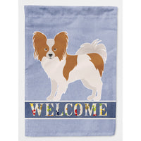 213-194030050743 Papillon Welcome Flag Canvas House Size By Carolines Treasures, Inc, Made In Usa.Heavy Duty Polyester House Size Decorative Sleeve Pole Flag. Each Flag Measures Approximately 28 X 40 Inches. This Flag Is Sewn And Made One At A Time And May Vary Slightly In Size. This Is A Sleeve Pole Flag That Will Fit A Standard Decorative Flag Pole. The Flag Pole And Bracket Are Not Included And Should Be Purchased Seperately. The Flag Is Printed On Both Sides Of The Fabric With One Side Mirroring The Other Side. Each Flag Is Printed In Full Color And They Dyes Are Heat Set For Durability.