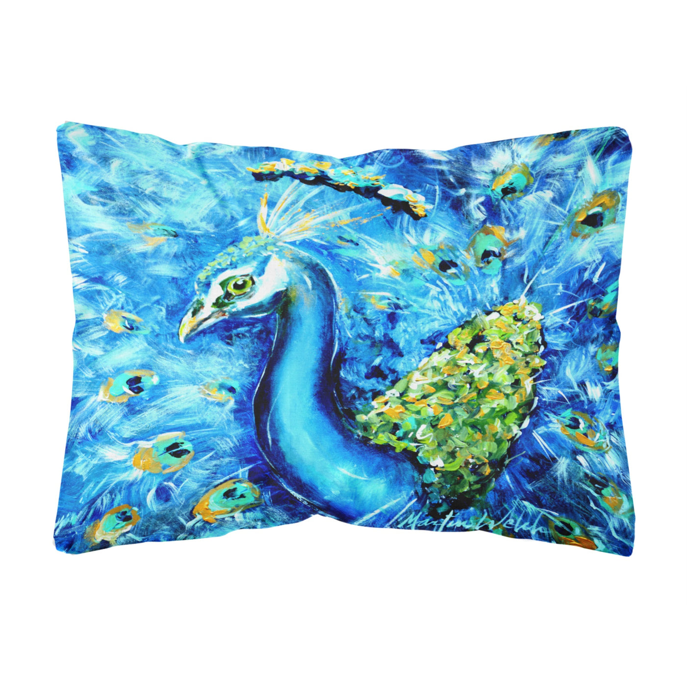 213-615872813766 Peacock Straight Up In Blue Canvas Fabric Decorative Pillow By Carolines Treasures, Inc, Made In Usa.Add Color To Your Solid Color Outdoor Patio Furniture Or Outdoor Seating Area With Our Full Color Artwork Outdoor Pillows. Each Pillow Measures Approximately 12 Inches By 16 Inches And Is Measured From Corner Of Pillow. 100% Polyester Fabric Canvas Pillow Sham With Pillow Form. This Pillow Is Made From Caroline'S Treasures New Canvas Type Material And Can Be Used Indoors Or Outdoors. This Fabric Is Coated On The Back Of The Canvas To Make It Water Resistant. These Pillows Are Also Mildew Resistant, Stain Resistant, Fade Resistant And Machine Washable. These Pillows Are All Made By Hand And May Vary Slightly In Size.