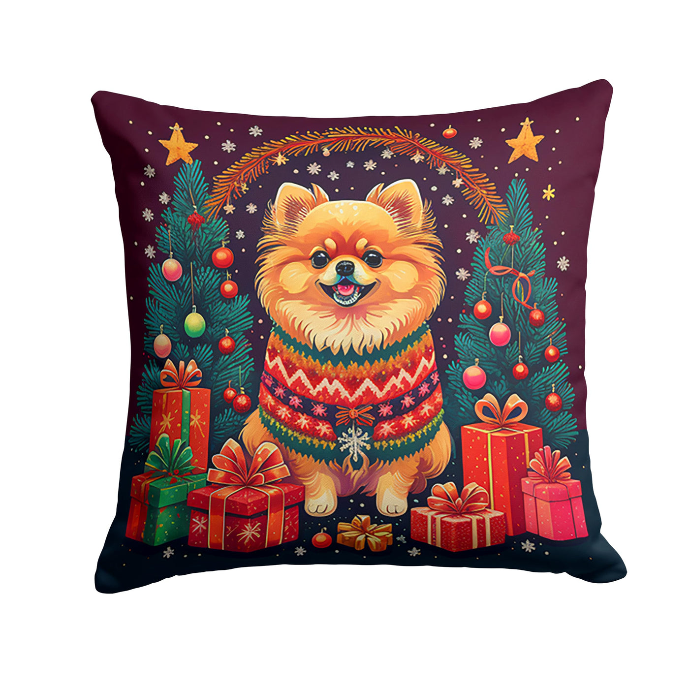 Throw Pillow Featuring Breed Specific Pomeranian Artwork. Celebrate Christmas With This Christmas Pillow. Add A Touch Of Vibrancy And Comfort To Your Outdoor Seating With Caroline'S Treasures Fabric Decorative Pillow. Measuring Approximately 14 Inches By 14 Inches, This Outdoor Pillow Is Crafted To Elevate The Appeal Of Your Patio Furniture, Infusing It With Vivid Color And Artistic Flair. The Pillow Includes A 100% Polyester Fabric Sham Filled With A Quality Pillow Form To Provide Superior Comfort. Innovatively Made From Our Brand New Material, Specifically Woven For Its Water Resistance, This Pillow Is Designed For Durability. The Soft Canvas Fabric Offers Versatility In Use, Fit For Your Indoor Couch Or Your Outdoor Patio, Porch, Or Veranda. The Fabric Is Dyed With Colorfast Dyes Built For Resilience Against Weather Conditions, Ensuring The Pillow Retains Its Beauty Over Time. Constructed By Sewing Three Fabric Pieces To Create A Sham, The Polyester Insert Is Then Nestled Inside To Form The Pillow, Resulting In An Overstuffed Pillow That Maintains Its Shape. Both The Sham And The Pillow Insert Are Proudly Made In The United States. As The Pillows Are Handcrafted, There May Be Minor Variations In Size, Further Enhancing Their Unique Charm. Experience Comfort In Style With Caroline'S Treasures Fabric Decorative Pillow.