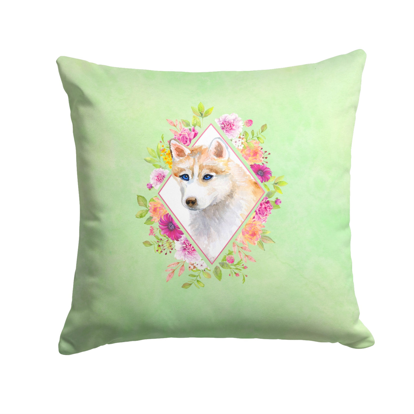 213-194030082690 Red Siberian Husky Green Flowers Fabric Decorative Pillow By Carolines Treasures, Inc, Made In Usa.Add Color To Your Solid Color Outdoor Patio Furniture Or Outdoor Seating Area With Our Full Color Artwork Outdoor Pillows. Approximately 14 Inches By 14 Inches Measured From Corner Of Pillow. 100% Polyester Fabric Pillow Sham With Pillow Form. This Pillow Is Made From Caroline'S Treasures New Material That Is Woven To Be Water Resistant. This Soft Canvas Fabric Can Be Used Inside On The Couch Or Outside On The Patio, Porch Or Veranda. We Dye The Fabric With Dyes That Are Color Fast And Built To Handle Weather. The Fabric Is Also Mildew Resistant, Stain Resistant, Fade Resistant And Machine Washable. Three Pieces Of Fabric Are Sewn Together To Create A Sham And Then A Polyester Insert Is Placed Inside The Sham To Form The Pillow. The Pillow Is Overstuffed And Holds It'S Shape. Both The Sham And The Pillow Insert Are Made In The United States. The Pillows Are All Handmade And May Vary Slightly In Size.