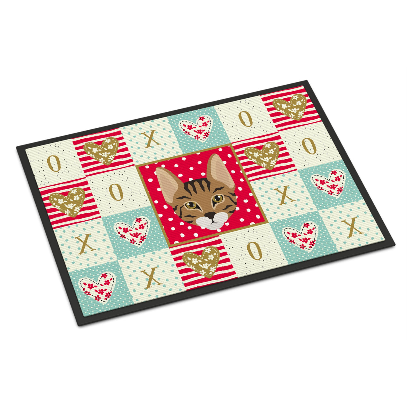 213-194030292303 Savannah Cat Love Indoor Or Outdoor Mat 18X27 By Carolines Treasures, Inc, Made In Usa.Welcome Your Family And Friends With This Artwork Mat In Full Color. This Action Backed Mat With Hold Up In Almost Any Weather Condition. This Door Mat Measures About 18 Inches By 27 Inches And Has A Black Binding Tape To Hold It'S Many Layers Together. The Top Layer Is A Polyester Felt That Is Dyed With The Image That You See On The Mat. The Next Couple Of Layers Give The Mat Stability And The Bottom Of The Mat Is Rubber That Has Been Stamped To Help Prevent Slipping. To Clean This Mat, Hose It Off With A Water Hose Or Use A Powerwasher. Do Not Use Any Cleaner That Produces Suds.
