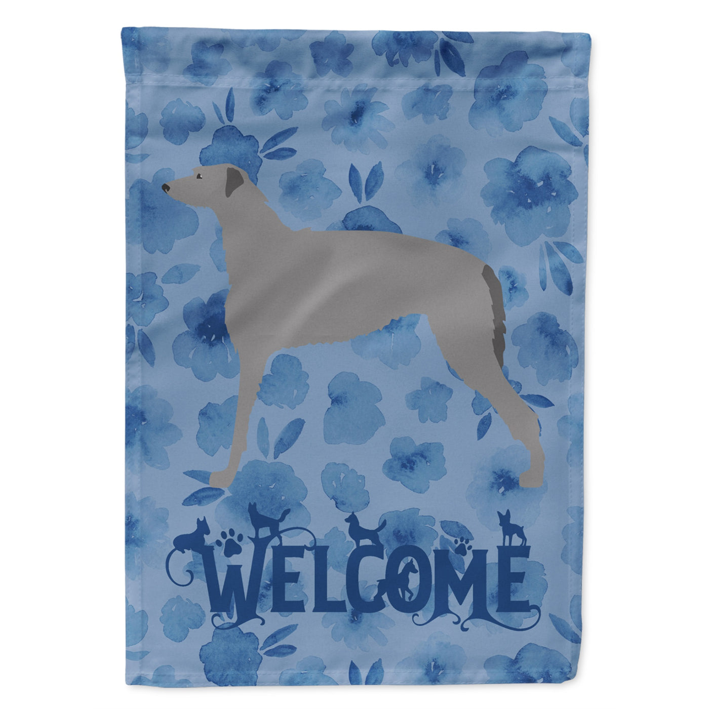 213-194030100530 Scottish Deerhound Welcome Flag Garden Size By Carolines Treasures, Inc, Made In Usa.Artwork For Your Garden, Patio Or Yard. This Is A Thick Double Sided Garden Flag Made From Two Pieces Of Polyester Fabric. This 2 Ply Garden Size Flag Is Water Resistant And Weather Proof. Heavier Than Most Other Garden Flags Available This Flag Will Hold Up In Wind, Rain And Snow. Make Your Personal Statement In Your Outdoor Decor With This Colorful Quality Garden Flag. This Decorative Garden Size Flag Has A Sleeve Sewn Into The Top Of The Flag To Allow You To Showcase Your New Flag On A Standard Size Garden Stand. The Garden Stand Is Sold Seperately.