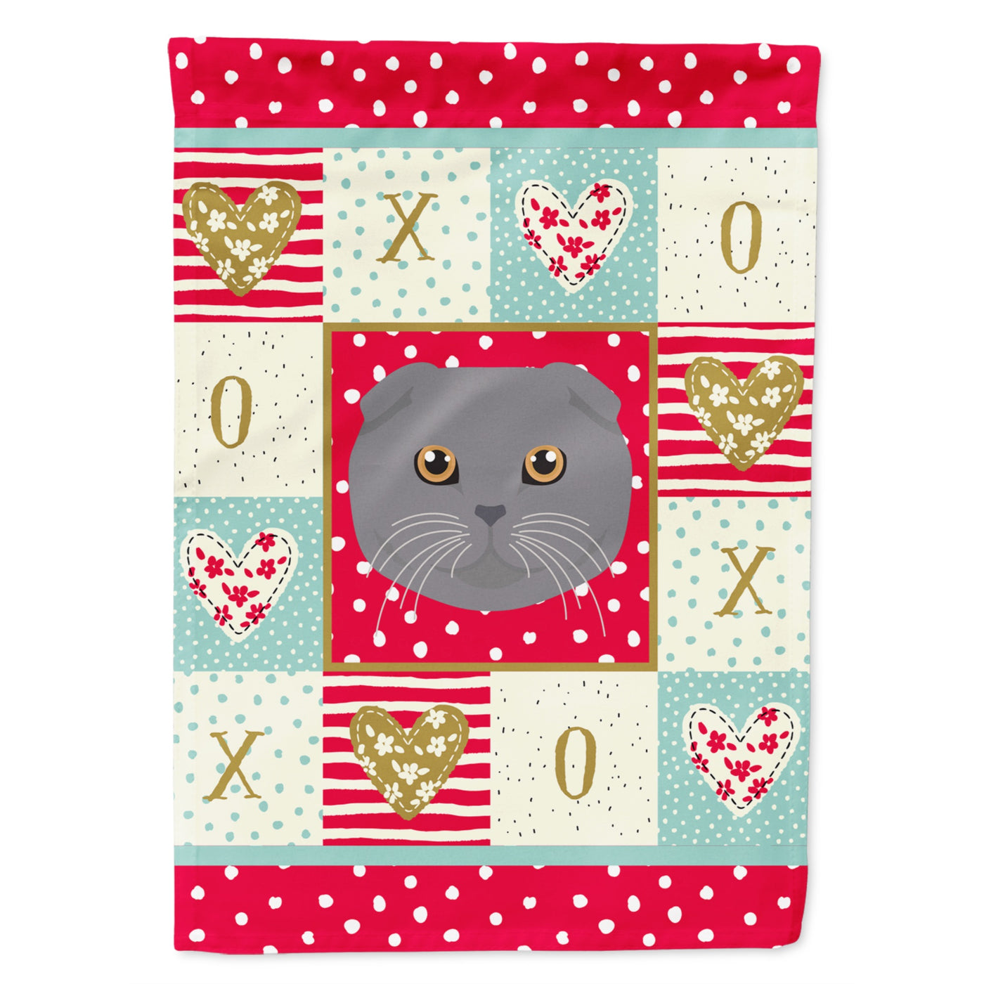 213-194030084724 Scottish Fold Cat Love Flag Garden Size By Carolines Treasures, Inc, Made In Usa.Artwork For Your Garden, Patio Or Yard. This Is A Thick Double Sided Garden Flag Made From Two Pieces Of Polyester Fabric. This 2 Ply Garden Size Flag Is Water Resistant And Weather Proof. Heavier Than Most Other Garden Flags Available This Flag Will Hold Up In Wind, Rain And Snow. Make Your Personal Statement In Your Outdoor Decor With This Colorful Quality Garden Flag. This Decorative Garden Size Flag Has A Sleeve Sewn Into The Top Of The Flag To Allow You To Showcase Your New Flag On A Standard Size Garden Stand. The Garden Stand Is Sold Seperately.