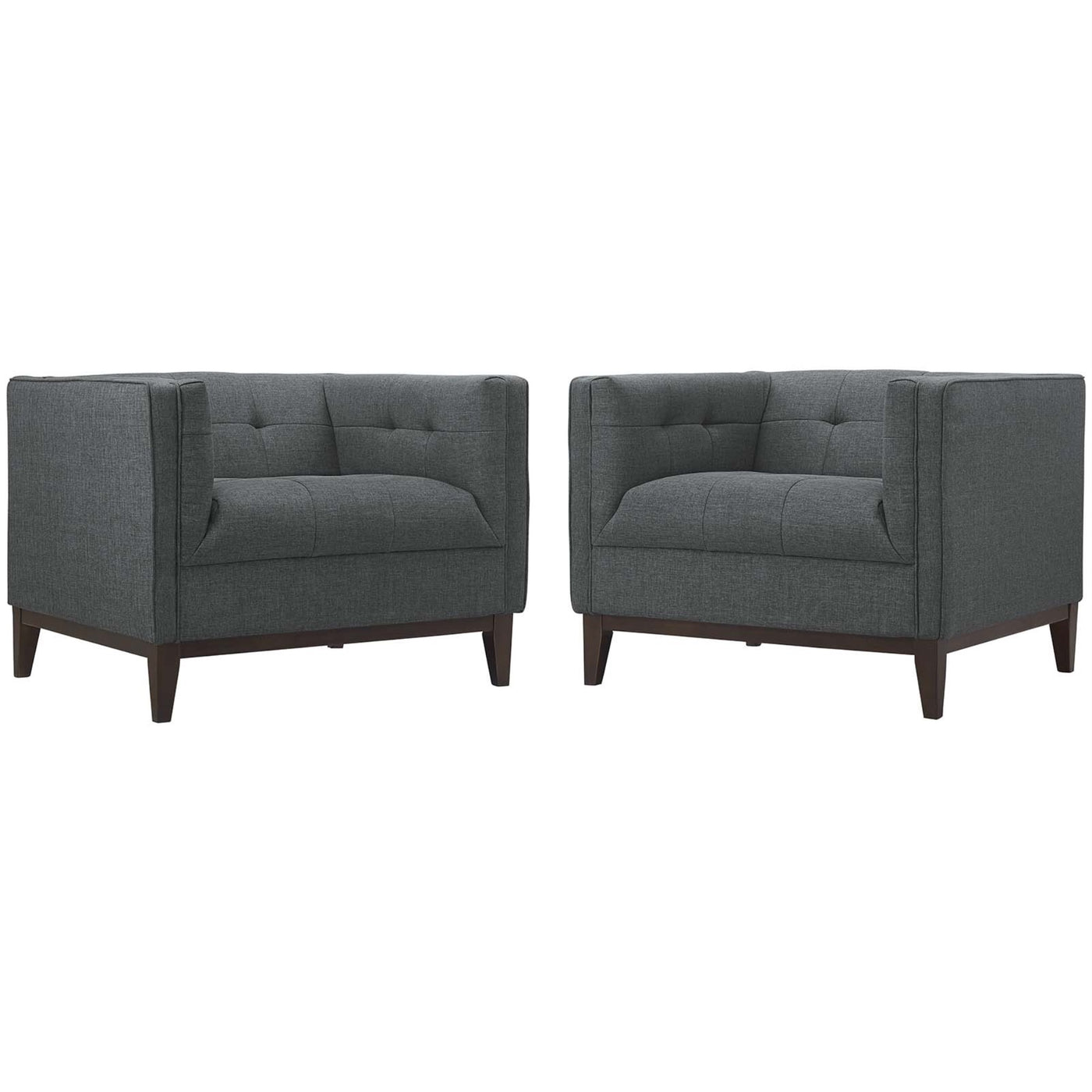 Serve Tufted Button Armchair Set Of 2 - Elegant Gray Upholstery, Dense Foam Cushioning, Walnut Stained Legs - Ideal For Living Rooms, Lounges, And Reception Areas