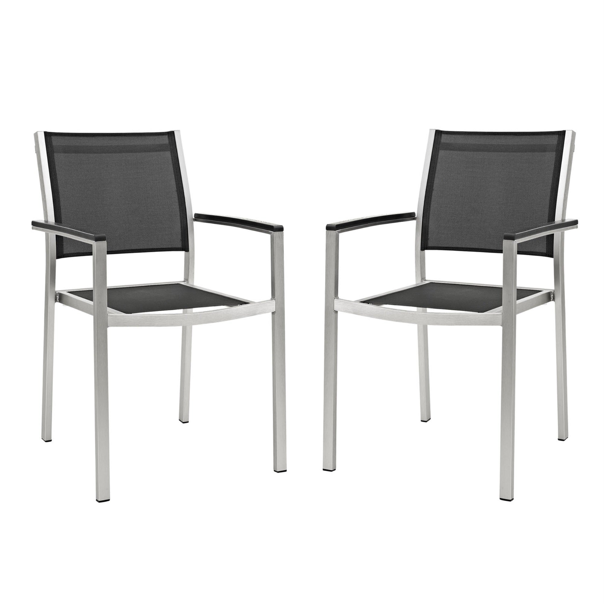 Enhance Your Outdoor Relaxation Experience With The Shore Outdoor Patio Dining Arm Chair In Mesh. Crafted With A Sturdy Anodized Brushed Aluminum Frame And Breathable Textilene Mesh, This Chair Offers Durability And Comfort. Assembly Is Effortless, And The Non-Marking Black Plastic Foot Caps Protect Your Patio Or Backyard. With Its Chic And Minimalist Design, The Shore Dining Arm Chair Adds A Touch Of Elegance To Your Casual Gatherings. This Set Includes Two Chairs, Ensuring Ample Seating For Your Outdoor Dining Needs.