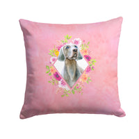 213-194030081525 Weimaraner Pink Flowers Fabric Decorative Pillow By Carolines Treasures, Inc, Made In Usa.Add Color To Your Solid Color Outdoor Patio Furniture Or Outdoor Seating Area With Our Full Color Artwork Outdoor Pillows. Approximately 14 Inches By 14 Inches Measured From Corner Of Pillow. 100% Polyester Fabric Pillow Sham With Pillow Form. This Pillow Is Made From Caroline'S Treasures New Material That Is Woven To Be Water Resistant. This Soft Canvas Fabric Can Be Used Inside On The Couch Or Outside On The Patio, Porch Or Veranda. We Dye The Fabric With Dyes That Are Color Fast And Built To Handle Weather. The Fabric Is Also Mildew Resistant, Stain Resistant, Fade Resistant And Machine Washable. Three Pieces Of Fabric Are Sewn Together To Create A Sham And Then A Polyester Insert Is Placed Inside The Sham To Form The Pillow. The Pillow Is Overstuffed And Holds It'S Shape. Both The Sham And The Pillow Insert Are Made In The United States. The Pillows Are All Handmade And May Vary Slightly In Size.