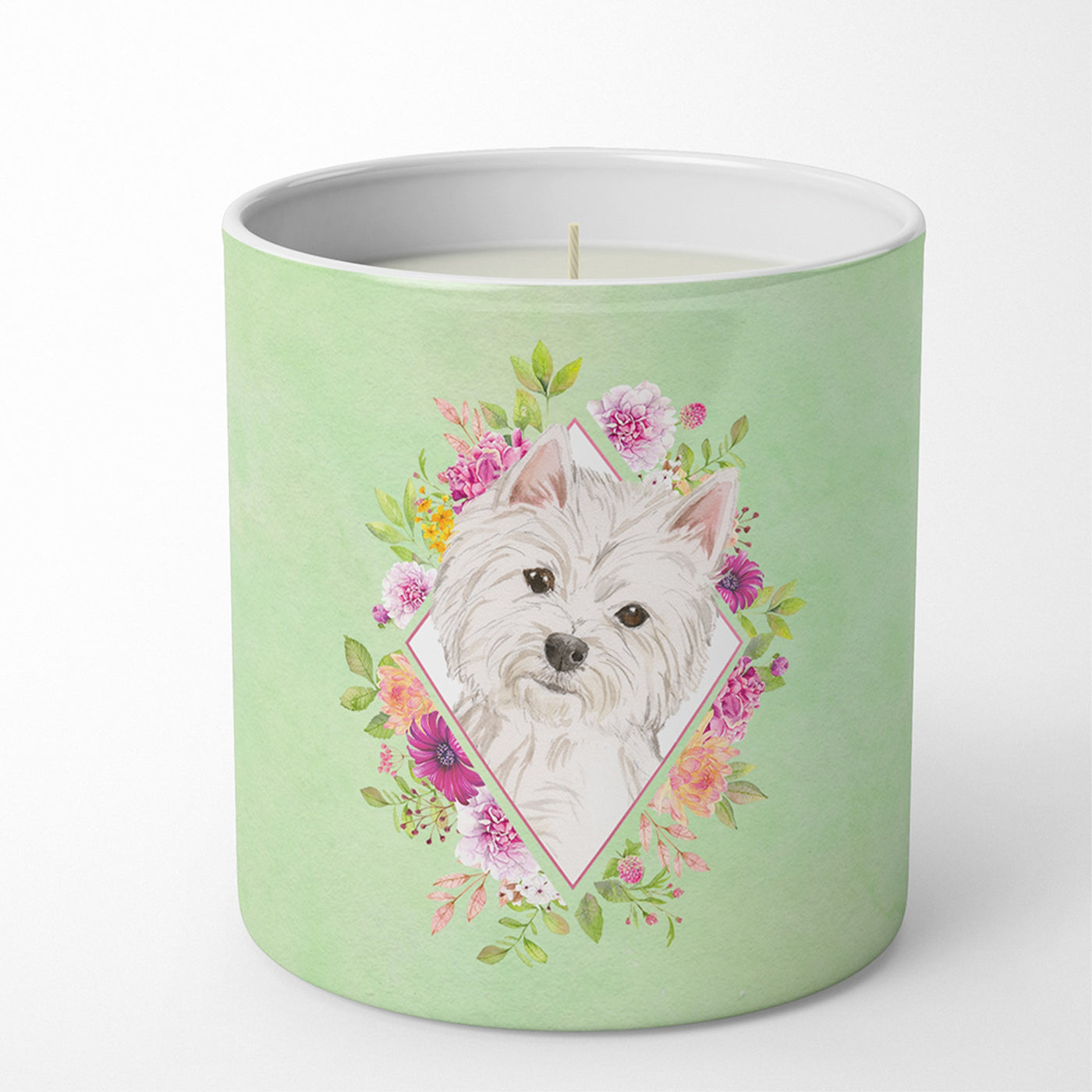 213-194030337882 Westie Green Flowers 10 Oz Decorative Soy Candle By Carolines Treasures, Inc, Made In Usa.Are You Tired Of Boring Candles? This Is A Perfect Solution. A 10 Oz Soy Candle In A Beautifully Decorated Container. This Container Features Artwork From Our Artists And Can Be Reused Once The Candle Is Burned. The Candle Inside Is A Large 10 Oz Hand Poured Candle That Is Made From 100% Soy Way Which Provides A Clean Burning Candle. This Is An All White Wax That Does Not Contain Chemical Based Dyes. Our Frangrance Oils Paired With Our Soy Wax Produces A Strong Scent. Always Burn Within Sight And Keep The Candle Away From Flammable Objects, Pets And Children. Trim Wick To 1/4 Inch Before Lighting. Make Sure That Your Candle Is On A Level Surface When Burning. Do Not Burn The Candle For More Than Four Hours As A Time. Stop Use When Only 1/4 Inch Of Wax Remains.