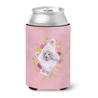 White Mini Poodle Pink Flowers Can Or Bottle Hugger