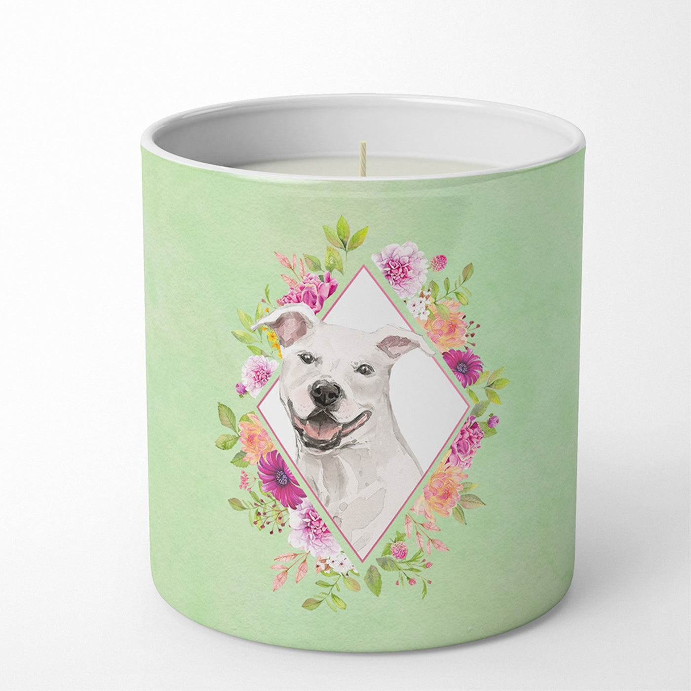 White Pit Bull Terrier Green Flowers 10 Oz Decorative Soy Candle