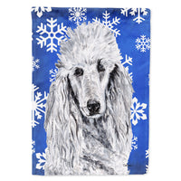 White Standard Poodle Winter Snowflakes Flag Garden Size