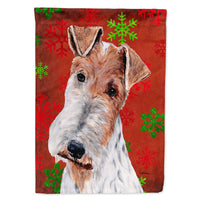 Wire Fox Terrier Red Snowflakes Holiday Flag Garden Size