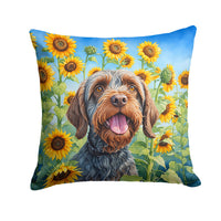 Wirehaired Pointing Griffon In Sunflowers Throw Pillow