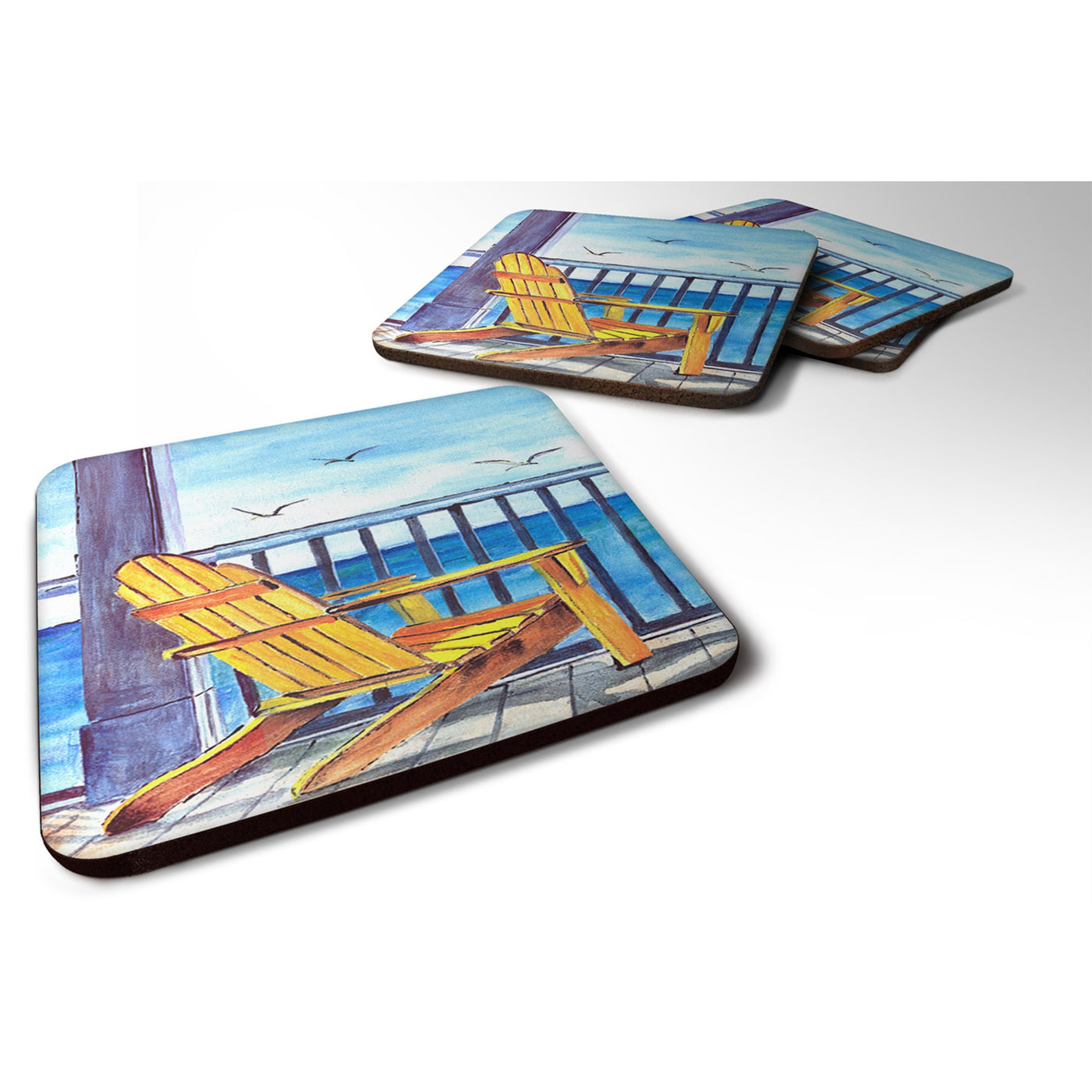 213-705332153881 Yellow Adirondack Chair Foam Coaster Set Of 4 By Carolines Treasures, Inc, Made In Usa.Square Artwork Foam Coaster Set Of Four Coasters. Each Measuring 3 1/2 Inches By 3 1/2 Inches. Permanently Dyed With Full Color Artwork And Fade Resistant. Great To Keep Water From Your Beverage Off Your Table And Add A Bit Of Flair To A Gathering. Match With One Of The Insulated Coolers Or Huggers For A Nice Gift Pack. Wash The Coaster In The Top Of Your Dishwasher, Take Out And Lay Flat To Dry. Design Will Not Come Off. Made From The Same Material That We Use For Our Mouse Pads. Material Is Heat Resistant. Perfect For Cold Or Hot Drinks. Coffee Or Tea.