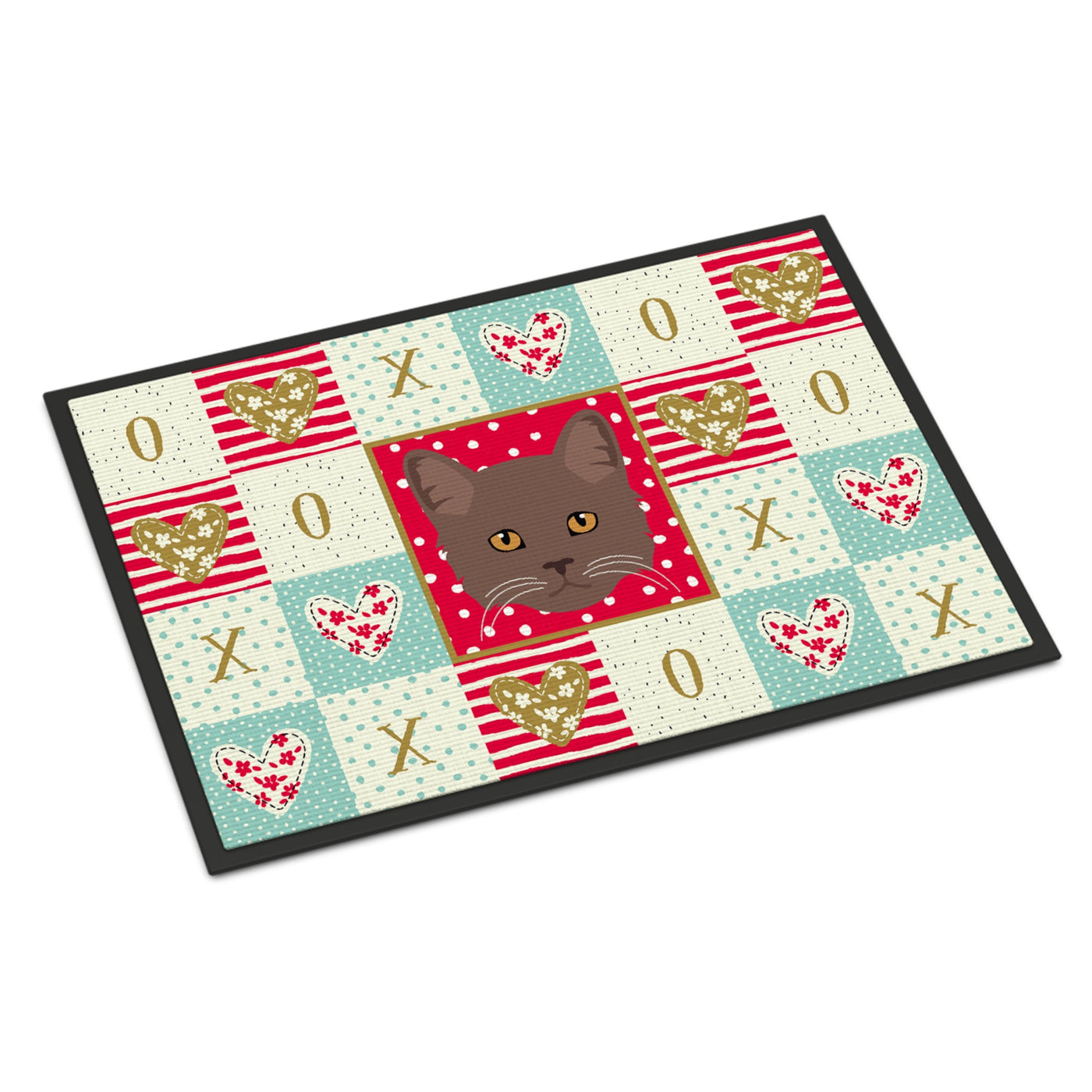 213-194030292518 York Chocolate Cat Love Indoor Or Outdoor Mat 18X27 By Carolines Treasures, Inc, Made In Usa.Welcome Your Family And Friends With This Artwork Mat In Full Color. This Action Backed Mat With Hold Up In Almost Any Weather Condition. This Door Mat Measures About 18 Inches By 27 Inches And Has A Black Binding Tape To Hold It'S Many Layers Together. The Top Layer Is A Polyester Felt That Is Dyed With The Image That You See On The Mat. The Next Couple Of Layers Give The Mat Stability And The Bottom Of The Mat Is Rubber That Has Been Stamped To Help Prevent Slipping. To Clean This Mat, Hose It Off With A Water Hose Or Use A Powerwasher. Do Not Use Any Cleaner That Produces Suds.