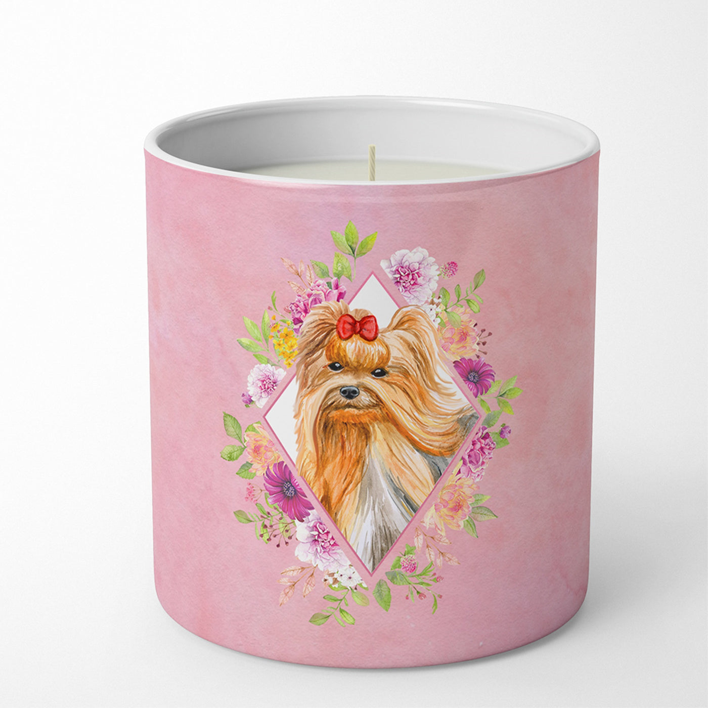 Yorkshire Terrier #2 Pink Flowers 10 Oz Decorative Soy Candle
