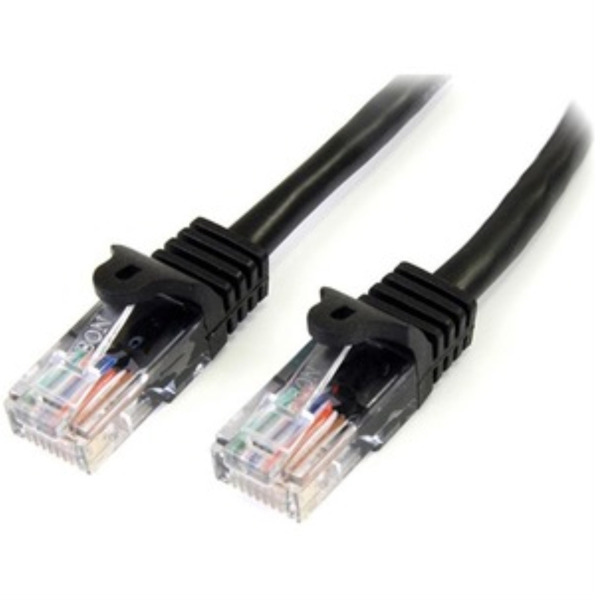 100Ft Cat5E Black Snagles Patch - 4E7600 This 100-Foot Cat5E Cable Meets Or Exceeds All Category 5E Cable Specifications To Ensure Reliable Ethernet Network Connections. Plus, The Cable Features A Durable Black Pvc Jacket That Enables You To Color Code Your Network Cable Runs As Needed. Snagless Rj45 Clips Help Protect Your Network Connections For Easier Cable Runs, The Snagless Connectors Protect The Cable'S Rj45 Clips During Installation, Making Them Less Likely To Snag Or Break. This Ensures A Sturdy Connection By Preventing The Cable From Becoming Loose From The Port. The Cable Features Moulded Boots That Offer Connector Strain Relief, By Stopping The Rj45 Connector Termination Points From Bending At Sharp Angles, And Reducing The Risk Of Damage To The Cable, Which Could Decrease Network Performance. 100% Copper For Outstanding Value Get The Highest Value For Your Cable Investment With Our Cat 5E Cables, Each One Manufactured Using High-Quality Copper Conductors. 24-Gauge Wire For High-Performance Network Connection Ensure High-Performance Capability For Your Demanding Ethernet Applications, Such As Power-Over-Ethernet, Using Cables That Include 24 Awg Copper. 50-Micron Gold Connectors Provide Peak Conductivity Rely On Our Rj45 Connectors To Deliver Optimum Conductivity While Eliminating Signal Loss Due To Oxidation Or Corrosion. The 45Patch100Bk Is Backed By Startech.Com'S For Reliability.