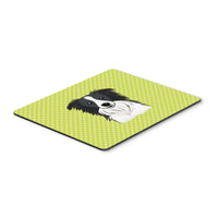Checkerboard Lime Green Border Collie Mouse Pad, Hot Pad Or Trivet
