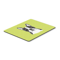 Checkerboard Lime Green Boston Terrier Mouse Pad, Hot Pad Or Trivet
