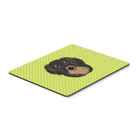 Checkerboard Lime Green Longhair Black And Tan Dachshund Mouse Pad, Hot Pad Or Trivet