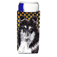 Black And White Collie Candy Corn Halloween Ultra Hugger For Slim Cans