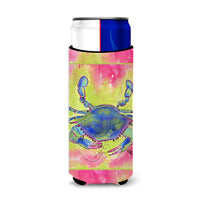 Blue Crab Bright Pink And Green Ultra Beverage Insulators For Slim Cans 8343Muk