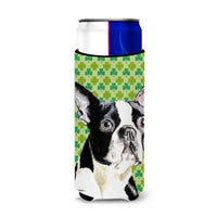 Boston Terrier St. Patrick'S Day Shamrock Portrait Ultra Hugger For Slim Cans