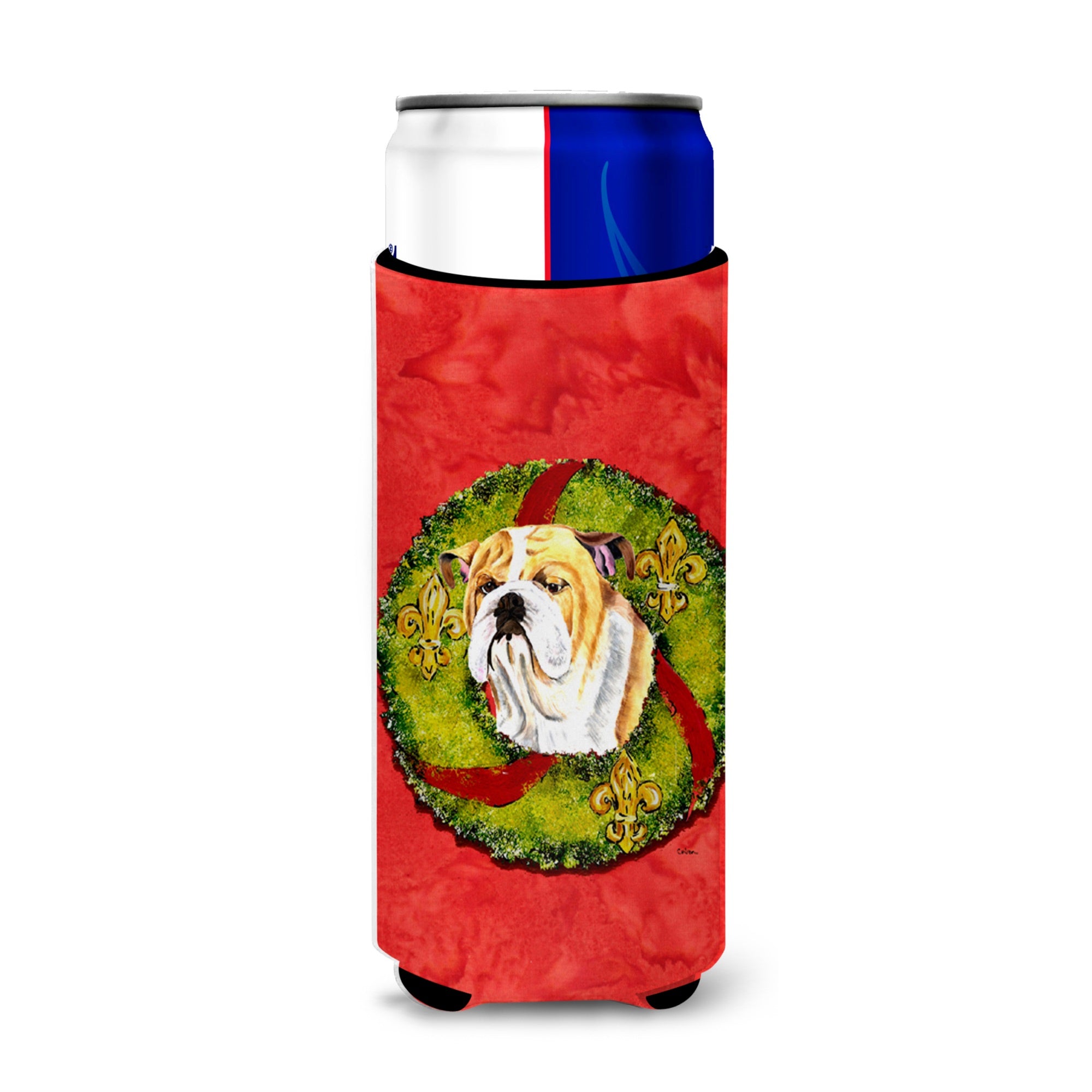 213-615872737246 Bulldog English Christmas Wreath Ultra Hugger For Slim Cans By Carolines Treasures, Inc, Made In Usa.Whatever You Drink We Have You Covereed. Artwork Created By One Of Our Artists And Printed In Full Color On This Bottle Cover. This Full Color Artwork Hugger Fits12 Oz Slim Cans For Michelob Ultra, Starbucks Refreshers, Heineken Light, Bud Lite Lime 12 Oz, Dry Soda, Coors, Resin, Vitaminwater Engergy, And Perrier Cans. Great Collapsible Beverge Insulator. Great To Keep Track Of Your Beverage And Add A Bit Of Flair To A Gathering. These Are In Full Color Artwork And Washable In The Washing Machine. Design Will Not Come Off.