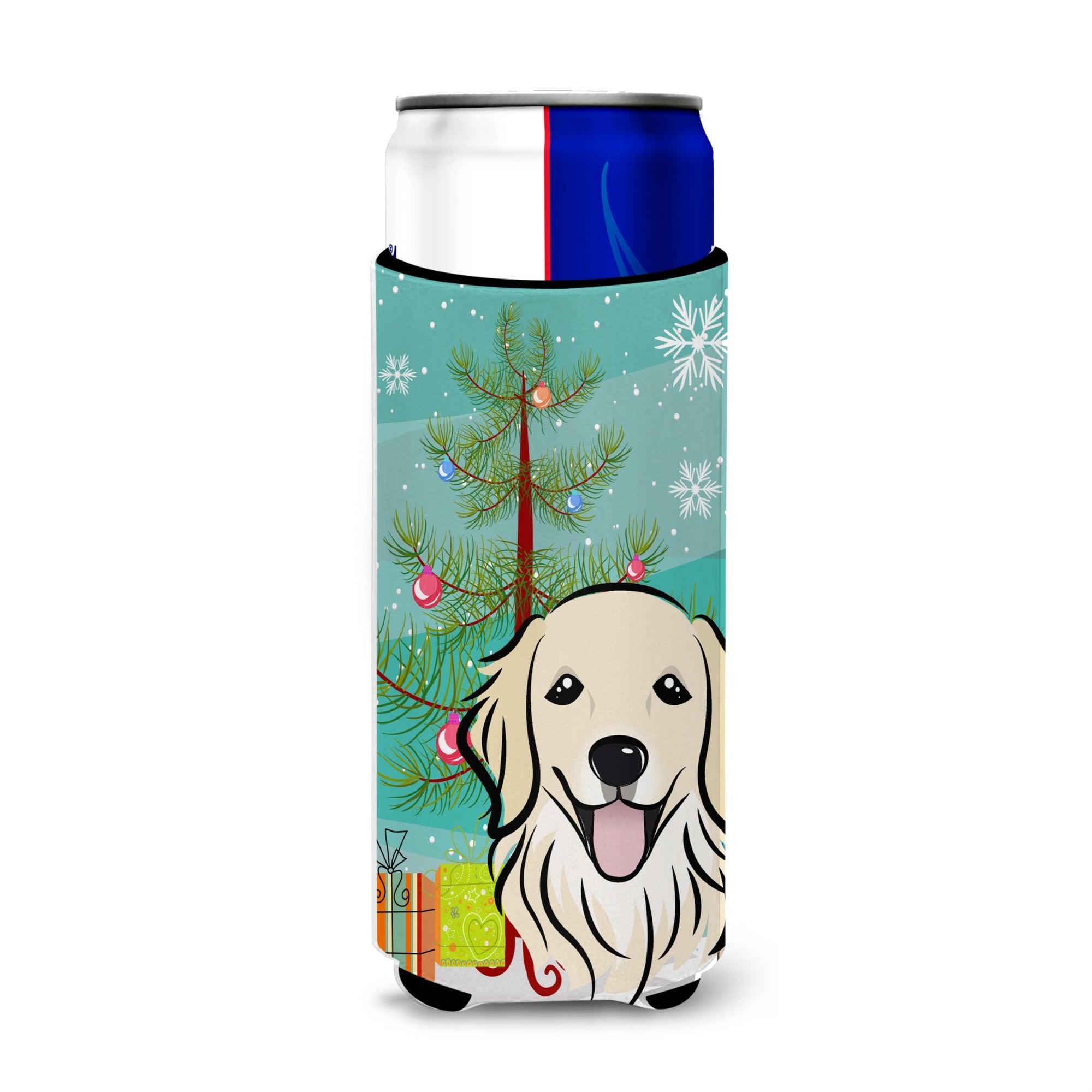 Caroline'S Treasures Bb1577Muk Christmas Tree And Golden Retriever Michelob Ultra Koozies For Slim Cans, Multicolor