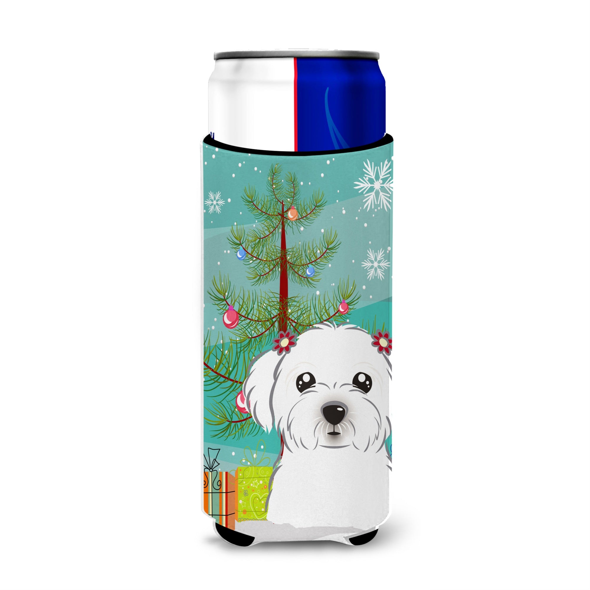Caroline'S Treasures Christmas Tree And Maltese Michelob Ultra Koozies For Slim Cans, Multicolor