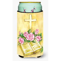 Caroline'S Treasures Easter Cross And Bible With Roses Tall Boy Koozie Hugger, Multicolor