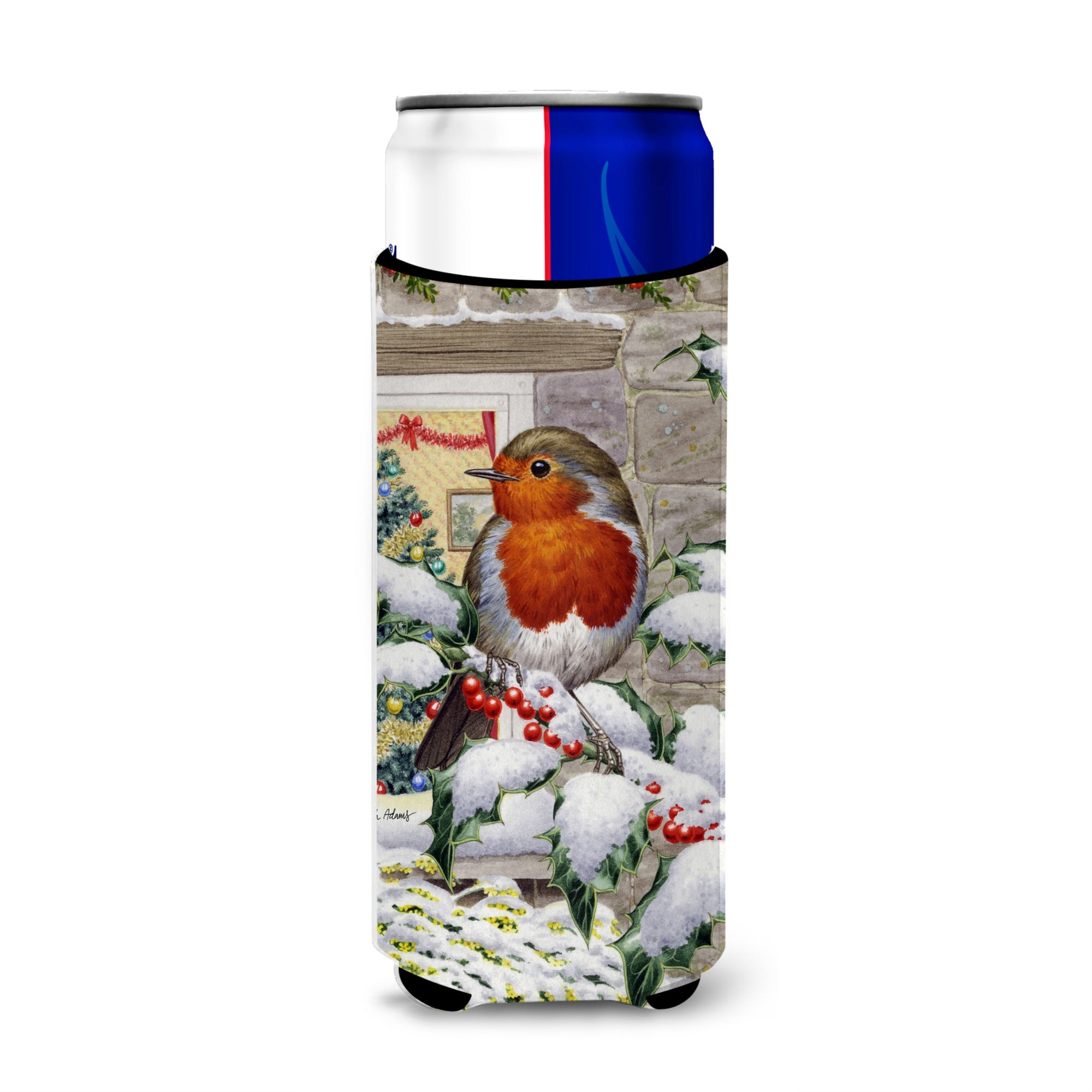Caroline'S Treasures European Robin At The Window Michelob Ultra Koozies For Slim Cans, Multicolor