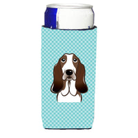 Checkerboard Blue Basset Hound Ultra Hugger For Slim Cans