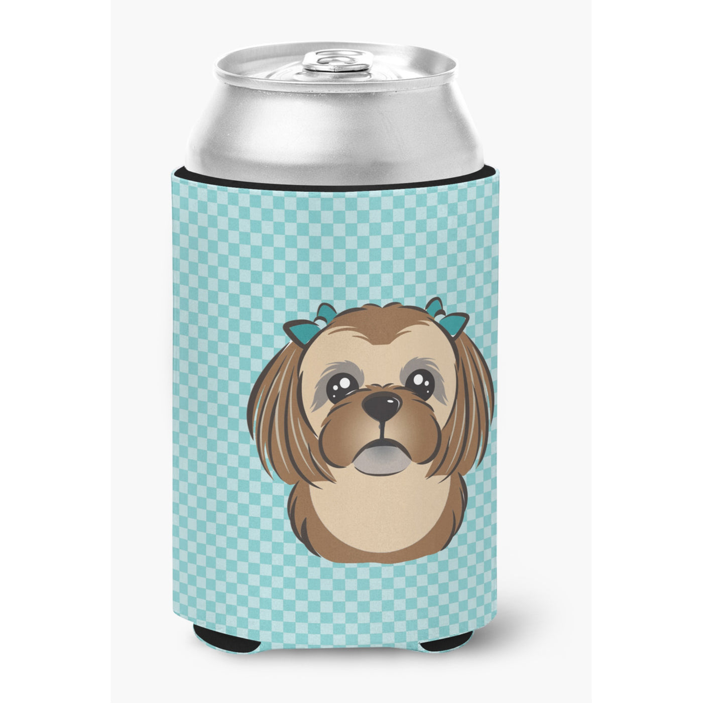 Checkerboard Blue Chocolate Brown Shih Tzu Can Or Bottle Hugger
