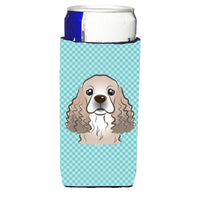 213-615872915415 Checkerboard Blue Cocker Spaniel Ultra Hugger For Slim Cans By Carolines Treasures, Inc, Made In Usa.Whatever You Drink We Have You Covereed. Artwork Created By One Of Our Artists And Printed In Full Color On This Bottle Cover. This Full Color Artwork Hugger Fits12 Oz Slim Cans For Michelob Ultra, Starbucks Refreshers, Heineken Light, Bud Lite Lime 12 Oz, Dry Soda, Coors, Resin, Vitaminwater Engergy, And Perrier Cans. Great Collapsible Beverge Insulator. Great To Keep Track Of Your Beverage And Add A Bit Of Flair To A Gathering. These Are In Full Color Artwork And Washable In The Washing Machine. Design Will Not Come Off.